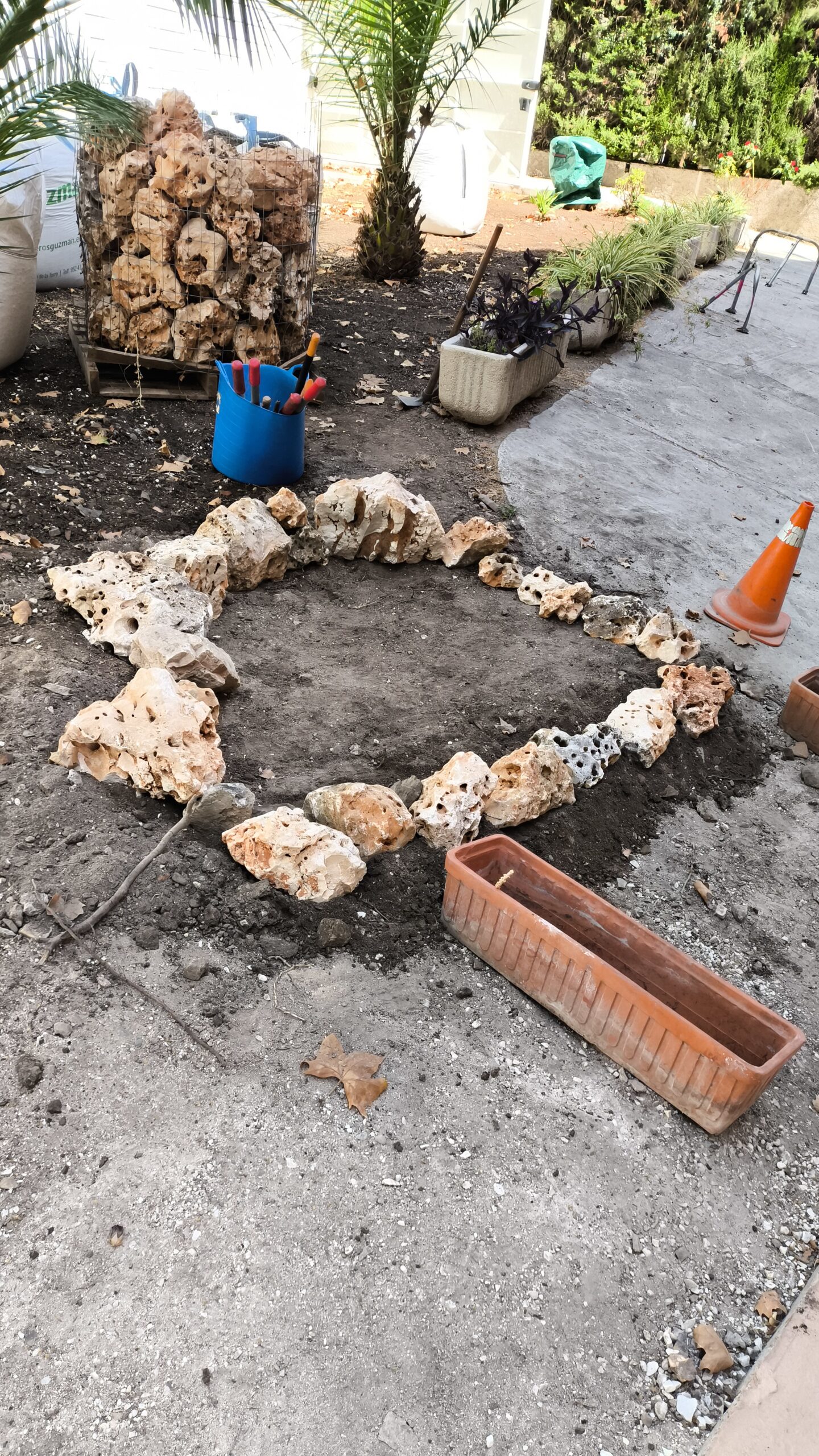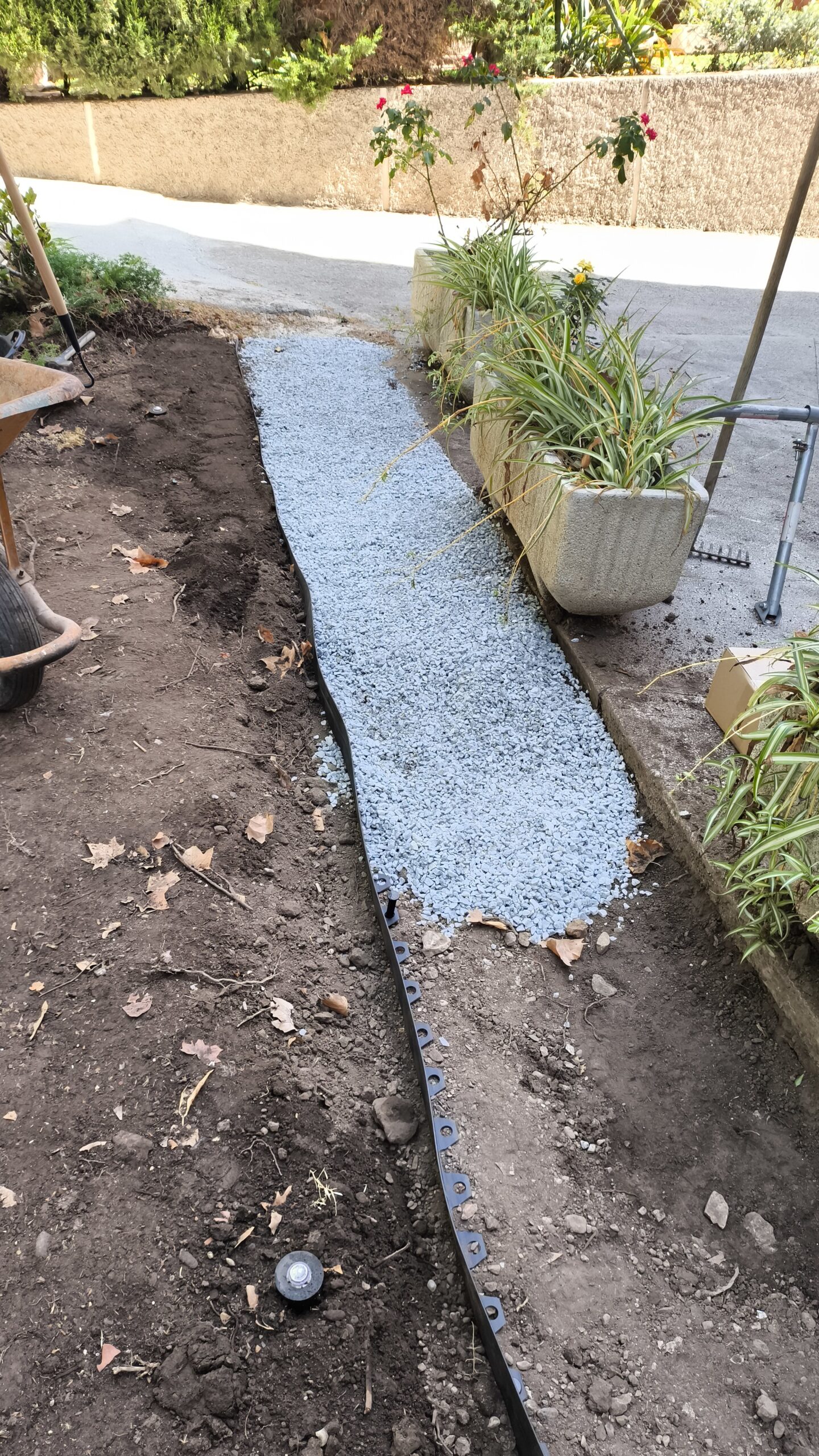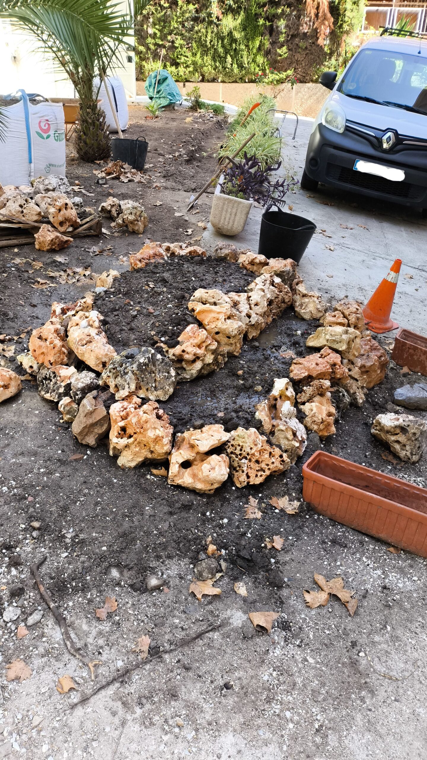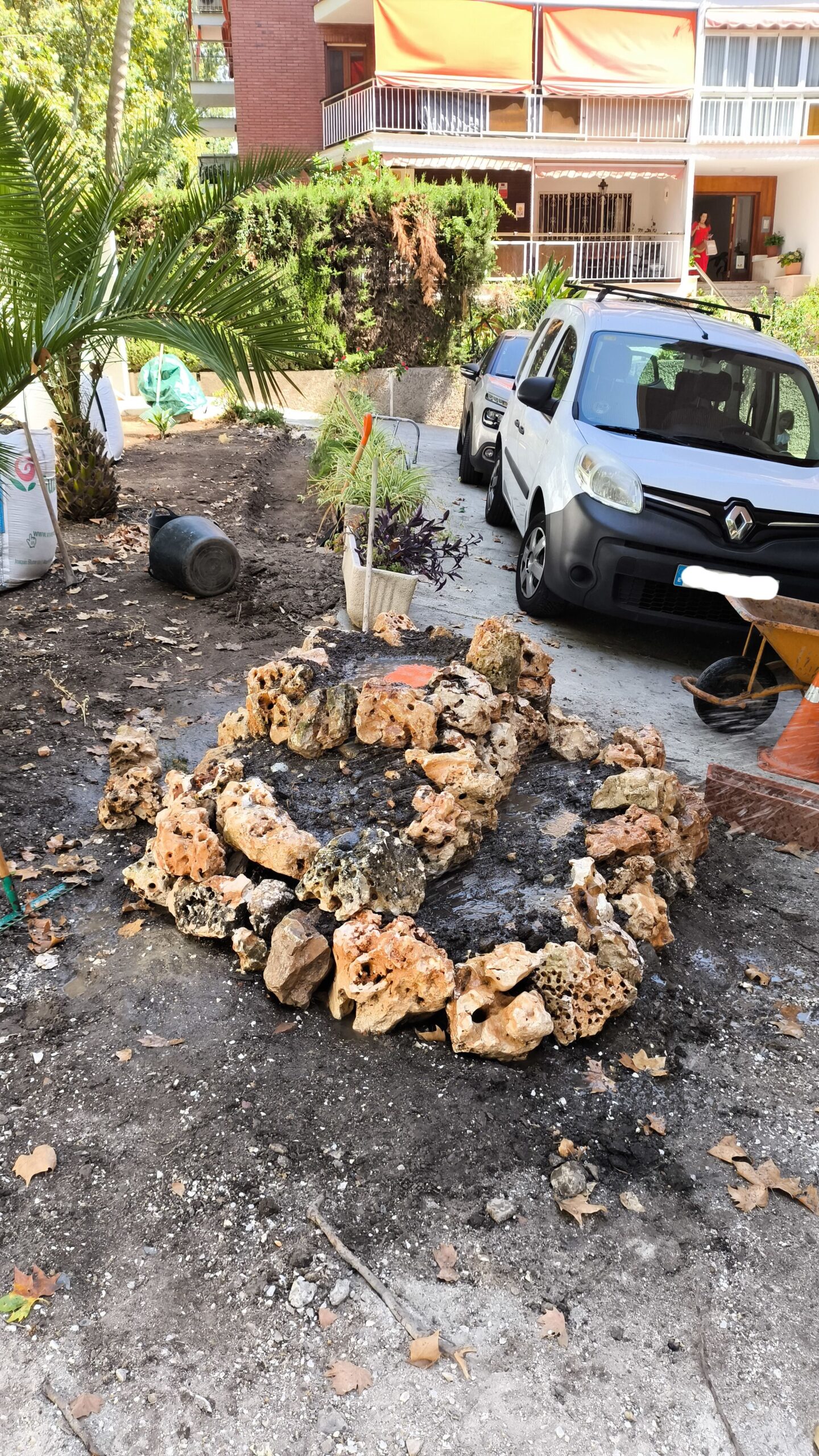 Durante el trabajo de limpieza, surgió la necesidad de bloquear el paso a los vehículos al interior del jardín, ¿y qué mejor forma de bloquear el paso que colocando una rocalla? Ahora sólo hay espacio para entrar con una carretilla.