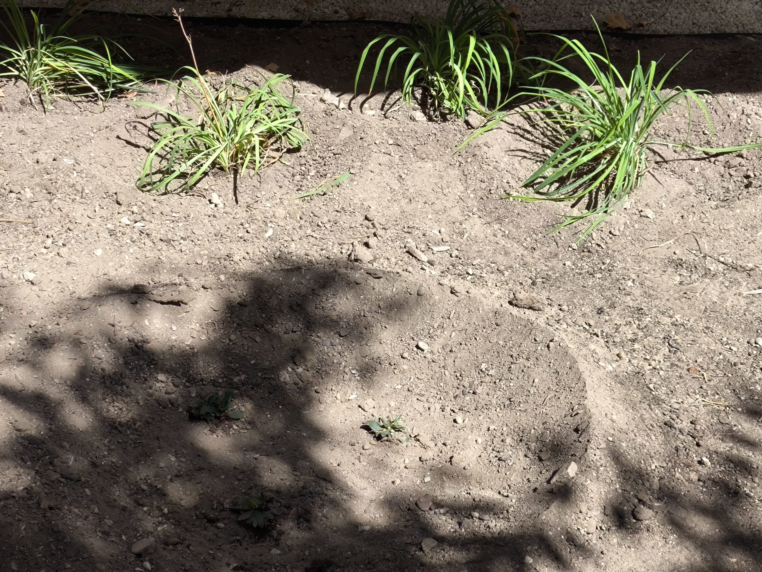 El lugar está mayormente sombreado por grandes árboles -plátanos de sombra y cipreses- e identificamos las zonas de mayor luminosidad con una media de 4 horas de sol al día. Pudimos observar varias plantas que no estaban contentas: Hibiscos con falta de luz y mucha bouganvilla con exceso de humedad y falta de luz, además de agapantos que no daban flores.